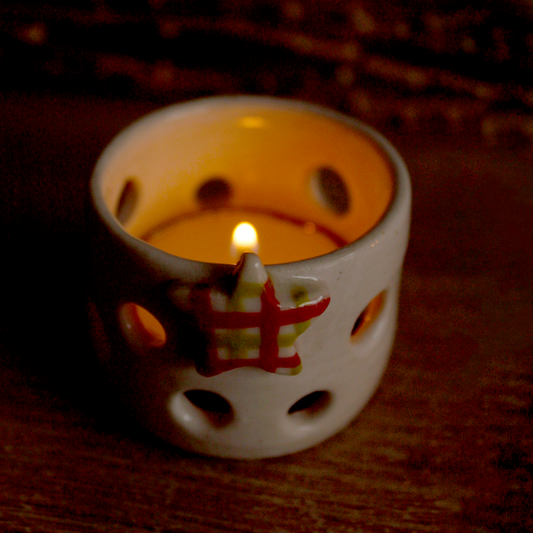 Ceramic Christmas Tea Light Holder - Gingham Star