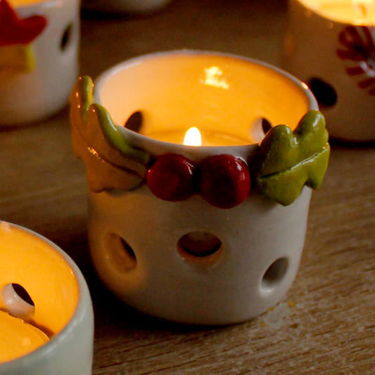 Ceramic Christmas Tea Light Holder - Holly A