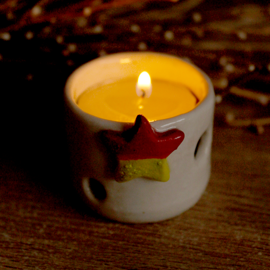 Ceramic Christmas Tea Light Holder - Dual Star
