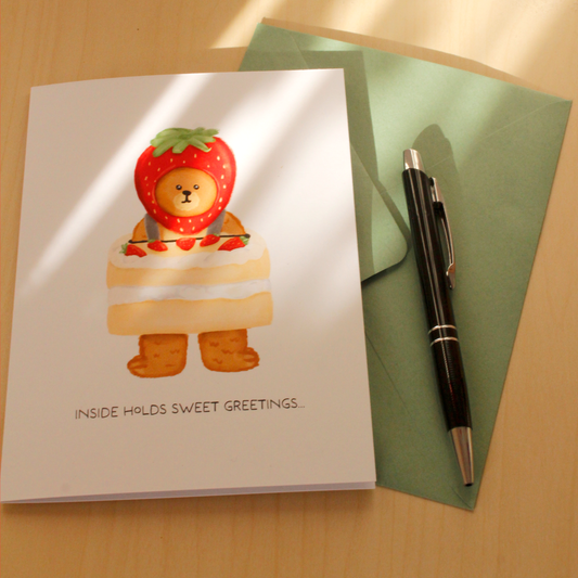 Bear In Strawberry Cake Costume Greeting Card